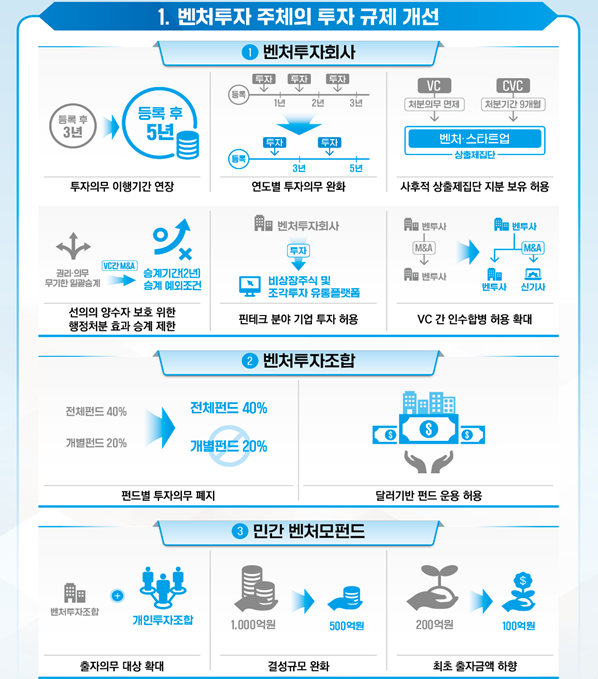¸ÕÀú, º¥Ã³ÅõÀÚȸ»çÀÇ ÅõÀÚ Àǹ« ÀÌÇà ±â°£Àº ±âÁ¸ 3³â¿¡¼ 5³âÀ¸·Î ¿ÏÈÇϰí, ÀÌ¿¡ µû¶ó ¿¬µµº° ÅõÀÚ Àǹ«µµ ÇÕ¸®ÀûÀ¸·Î Á¶Á¤ÇÑ´Ù. ±âÁ¸¿¡´Â º¥Ã³ÅõÀÚȸ»ç µî·Ï ÈÄ 3³â±îÁö ¸Å³â 1°Ç ÀÌ»ó ÅõÀÚ°¡ ÇÊ¿äÇßÁö¸¸, µî·Ï ÈÄ 3³â±îÁö 1°Ç, 5³â±îÁö Ãß°¡ 1°Ç ÀÌ»ó ÅõÀÚÇϵµ·Ï ÇÏ¿© Ãʱ⠺δãÀ» °æ°¨ÇÑ´Ù.